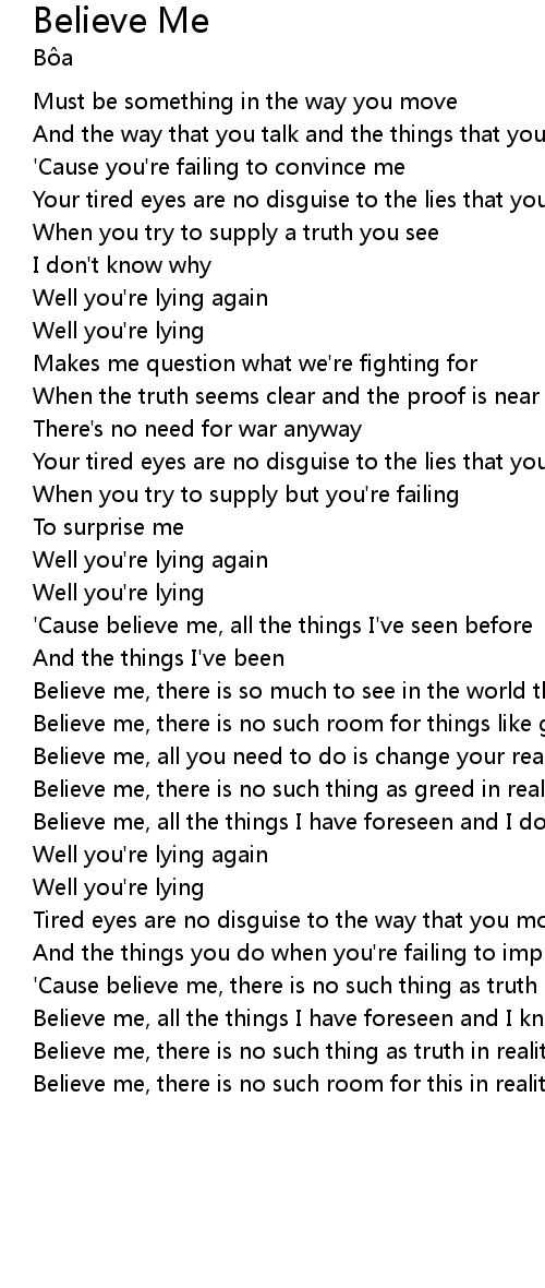 | 'Cause believe me, there is no such thing as truth in reality | |