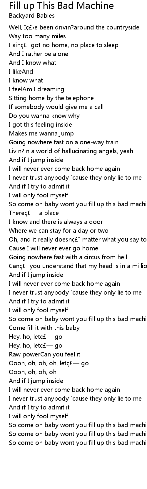 | So come on baby wont you fill up this bad machine | |