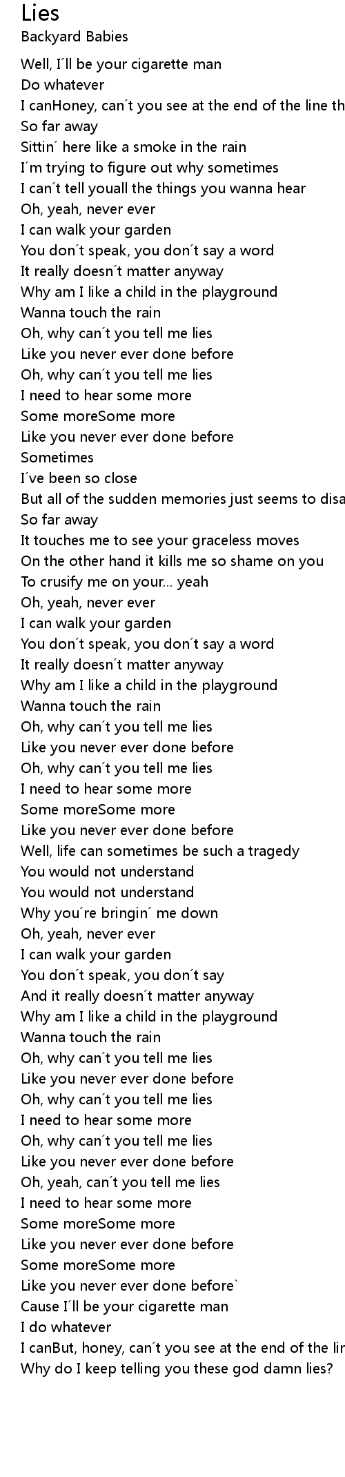 | Oh, yeah, can t you tell me lies | |