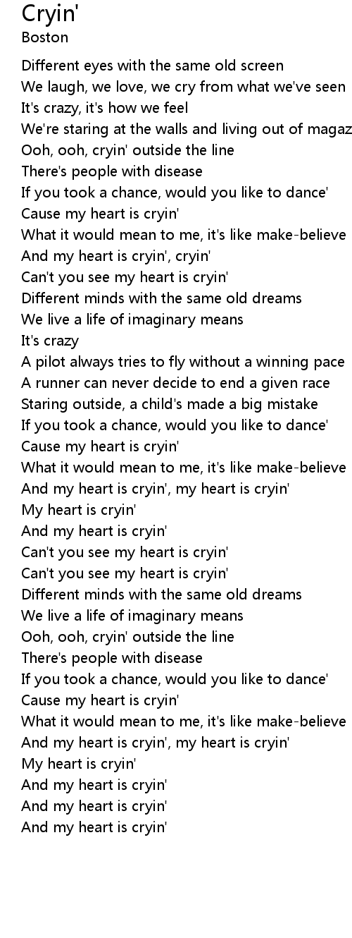 And my heart is cryin', cryin' |