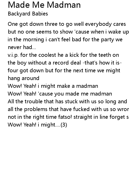 Wow! Yeah! 'cause you made me madman |
