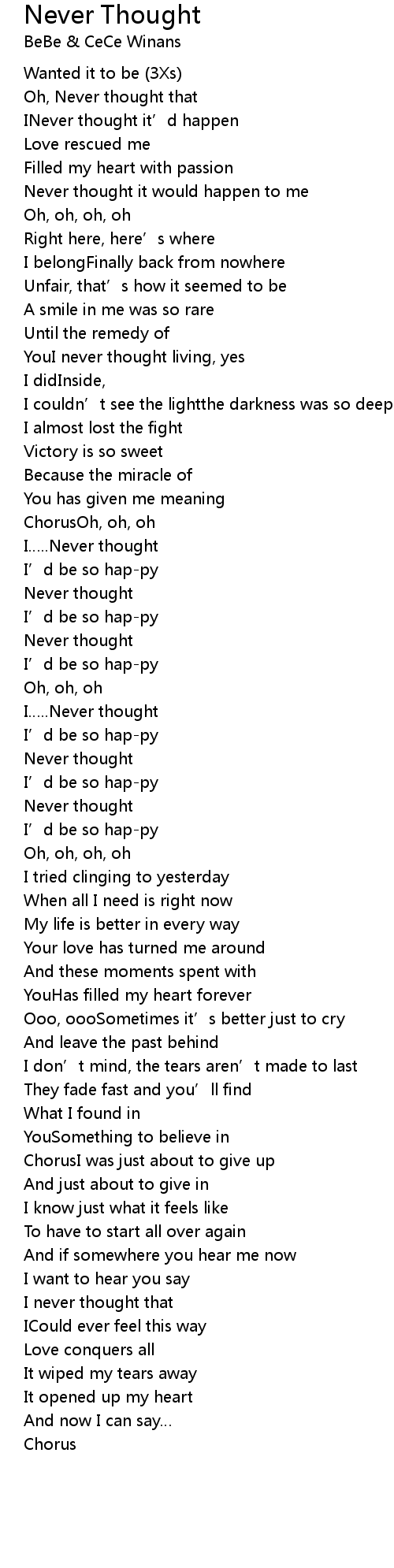 | 歌曲 | Never Thought |