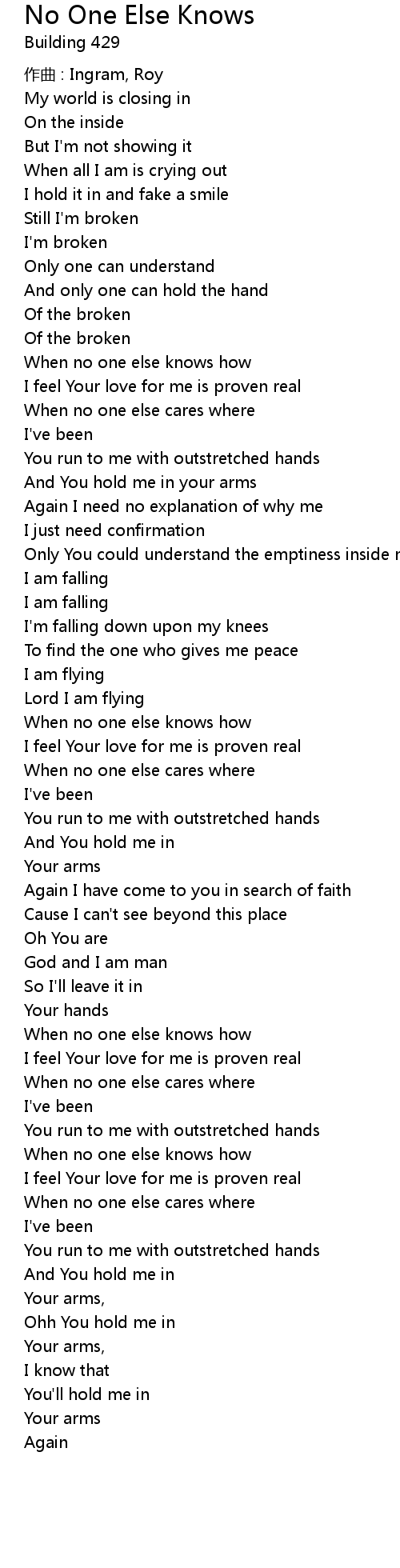 | 歌曲 | No One Else Knows |