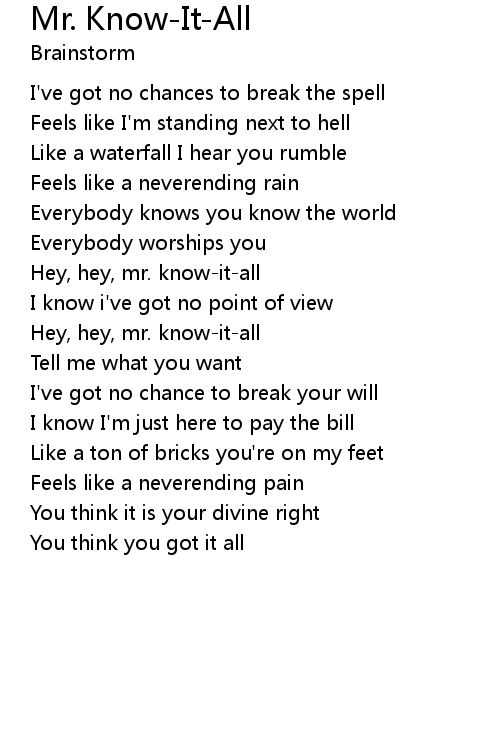 Hey, hey, mr. know-it-all |