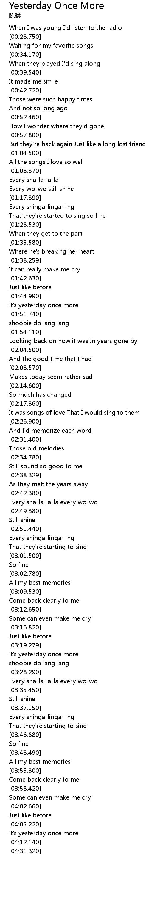 | [02:44.700] | Every sha-la-la-la every wo-wo |