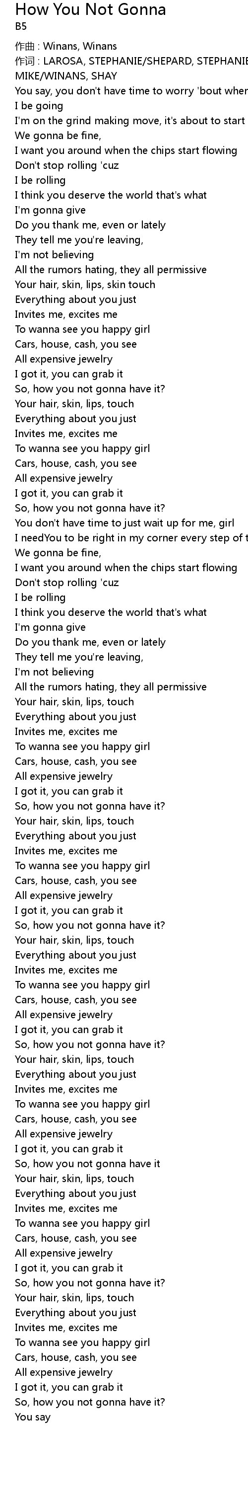 | 作词 : LAROSA, STEPHANIE/SHEPARD, STEPHANIE/WINANS, MARIO MENDELL/WINANS, MIKE/WINANS, SHAY | |