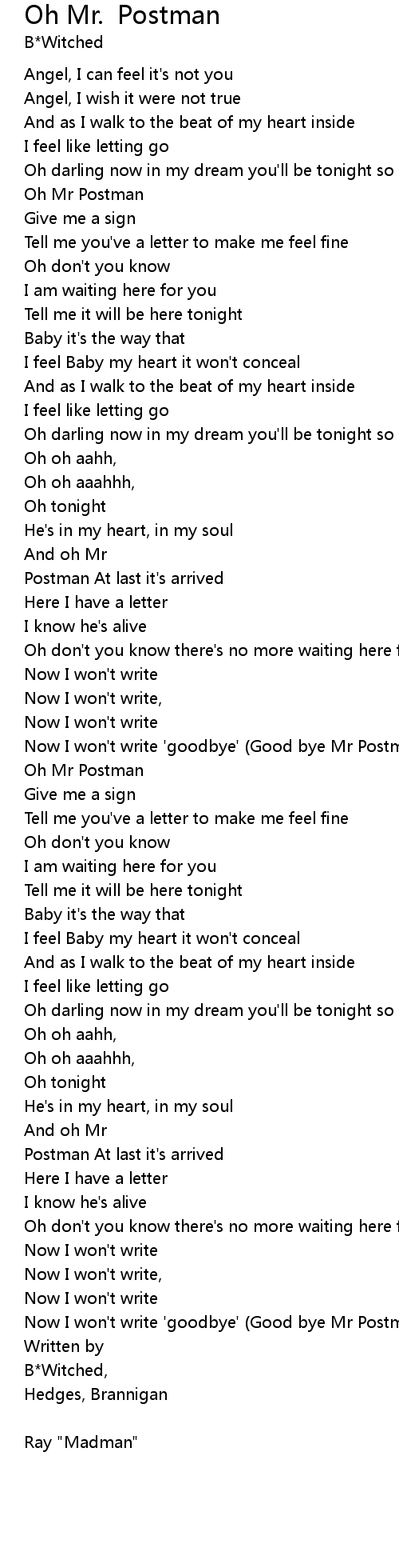 | Oh Mr Postman | |