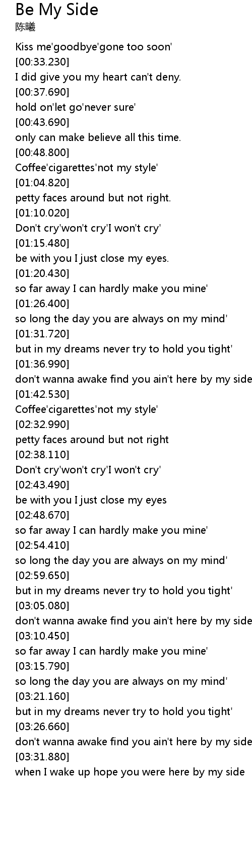 | [03:27.540] | don't wanna awake find you ain't here by my side |