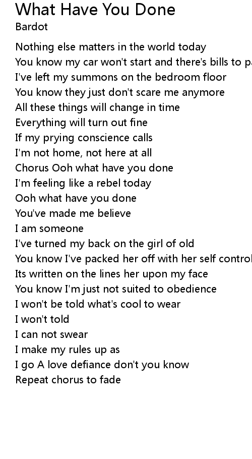 | Chorus Ooh what have you done | |