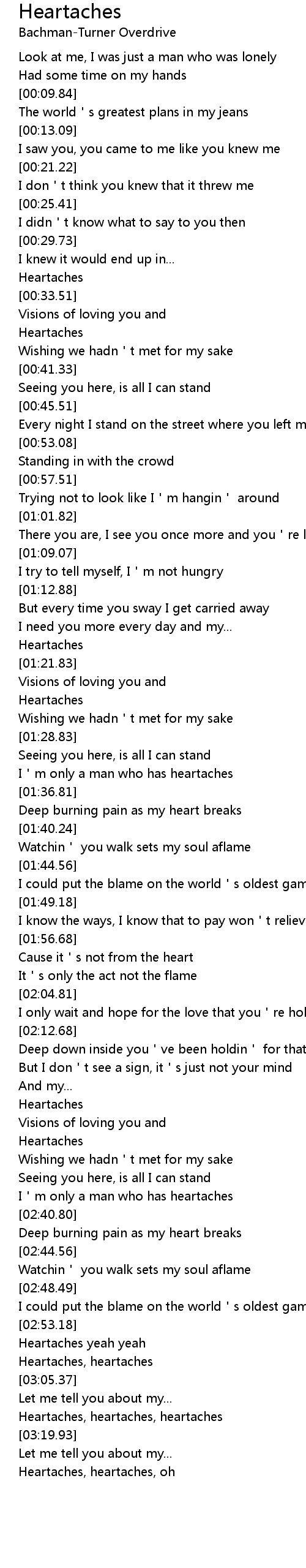 | [03:11.24] | Heartaches, heartaches, heartaches |