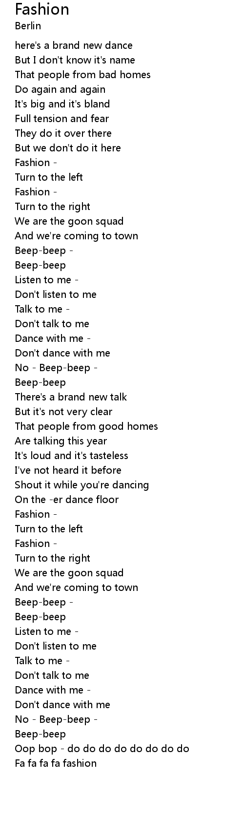 | Fa fa fa fa fashion |