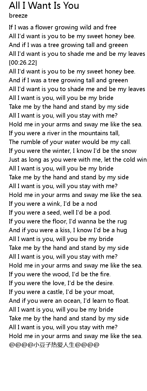 | [00:29.89] | All I' d want is you to be my sweet honey bee. |
