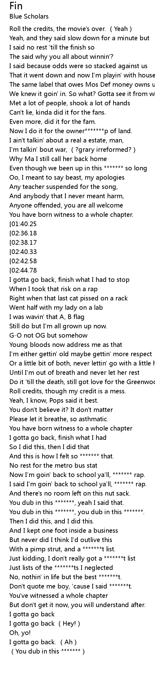 | [03:31.62][02:38.17][01:44.74] | Ain't no verses left it's all ad libs. |
