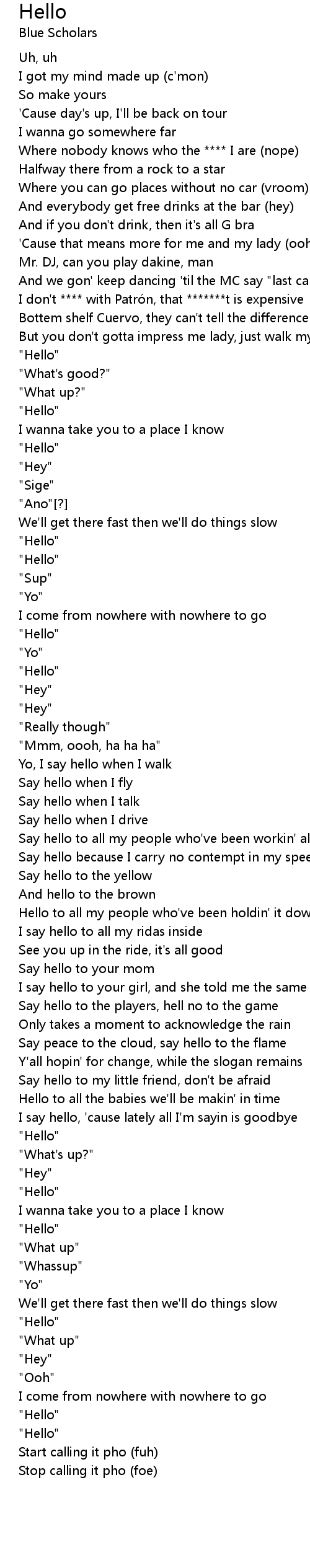 | I say hello, ' cause lately all I' m sayin is goodbye | |
