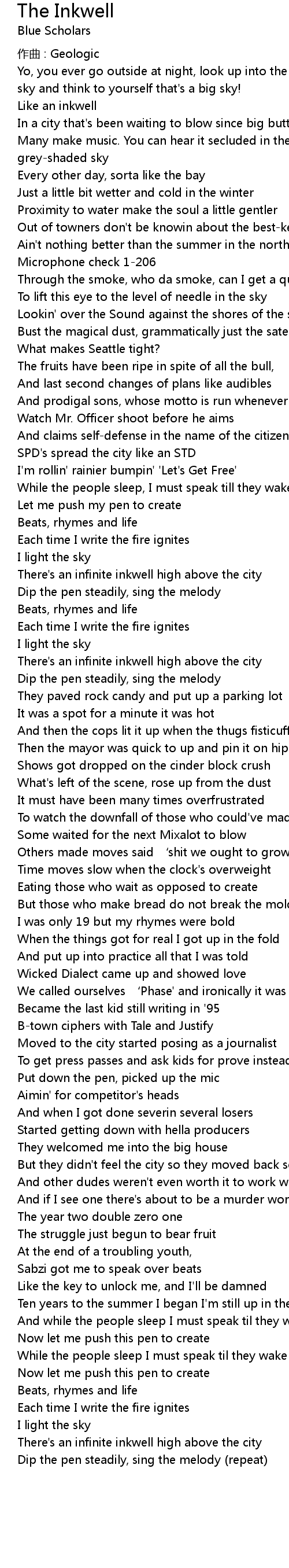 | 歌曲 | The Inkwell |
