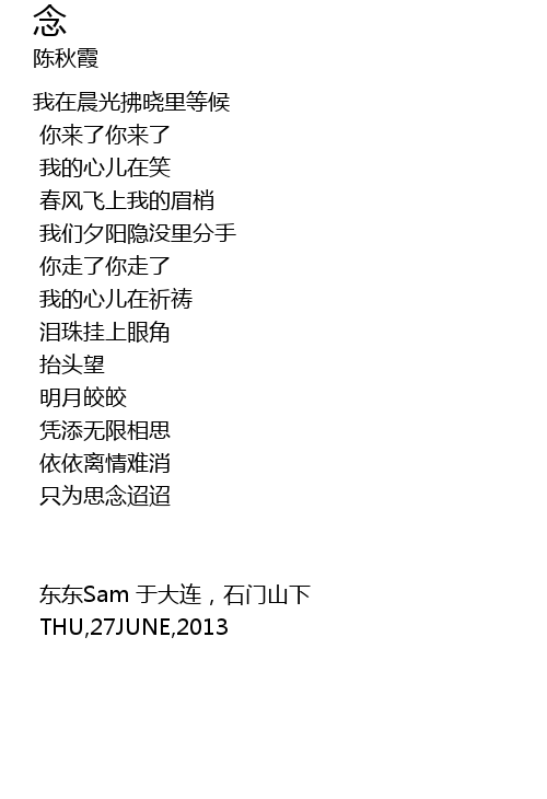 | dōng dōng Sam yú dà lián, shí mén shān xià | |