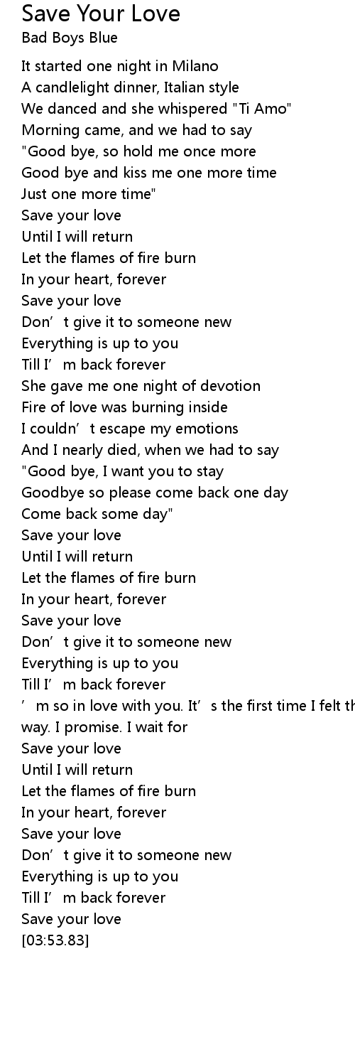 | [00:29.30] | We danced and she whispered "Ti Amo" |