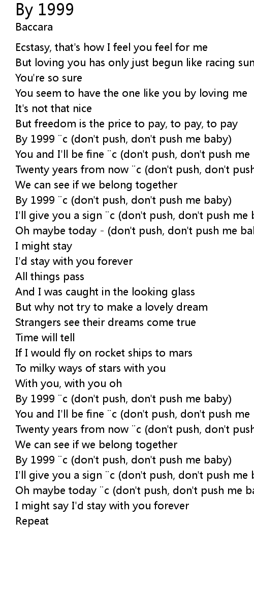 | By 1999 c don' t push, don' t push me baby | |