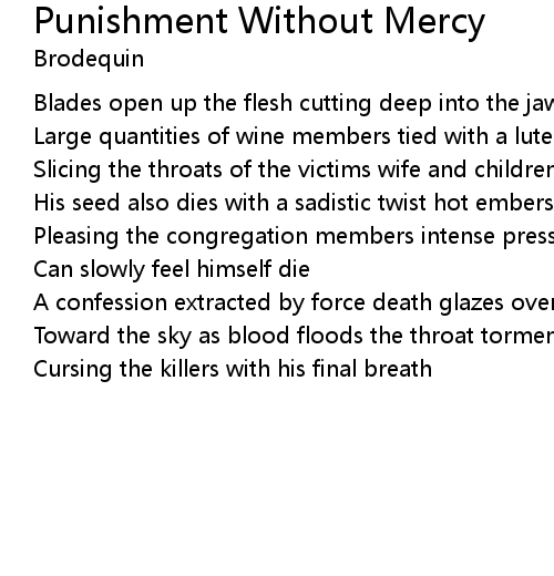 Toward the sky as blood floods the throat torment with death not quick enough |