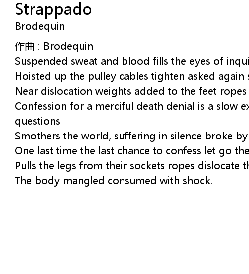 | Suspended sweat and blood fills the eyes of inquisitor mocks all answers | |