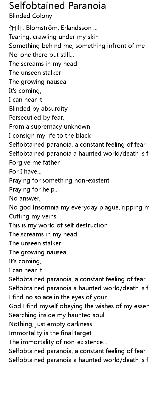 | 歌曲 | Selfobtained Paranoia |
