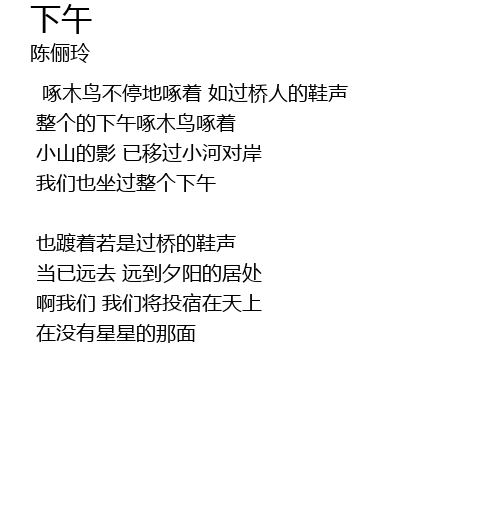 | 啄木鸟不停地啄着 如过桥人的鞋声 | |