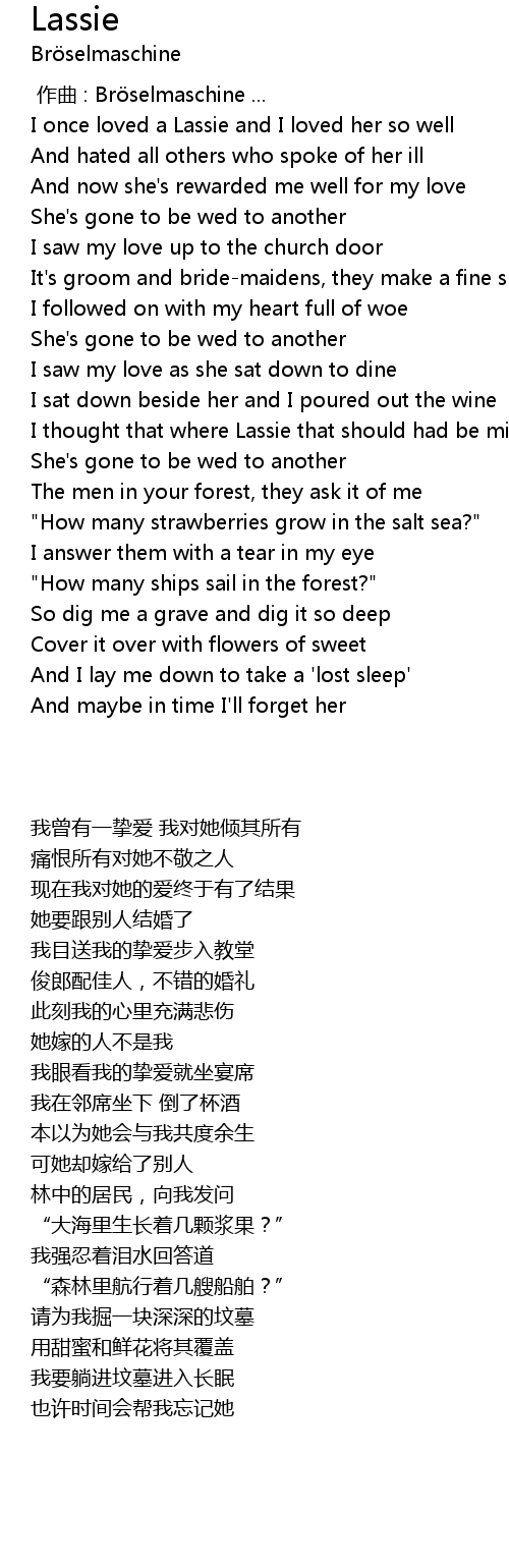 | [00:27.085] | I once loved a Lassie and I loved her so well |