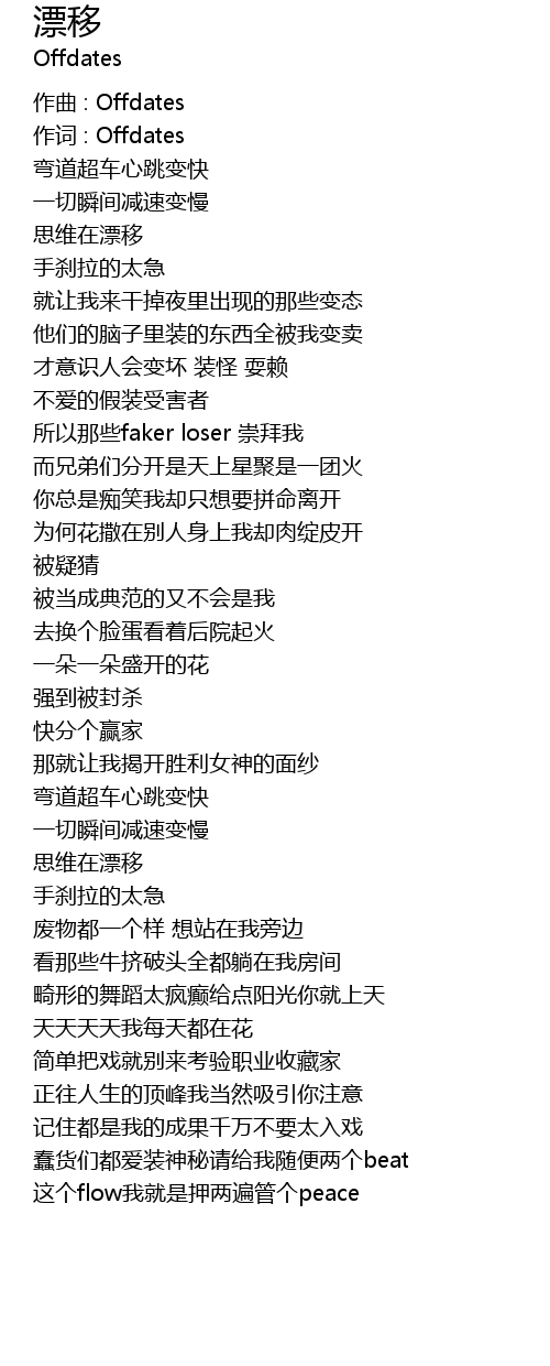 | 作词 : Offdates | |