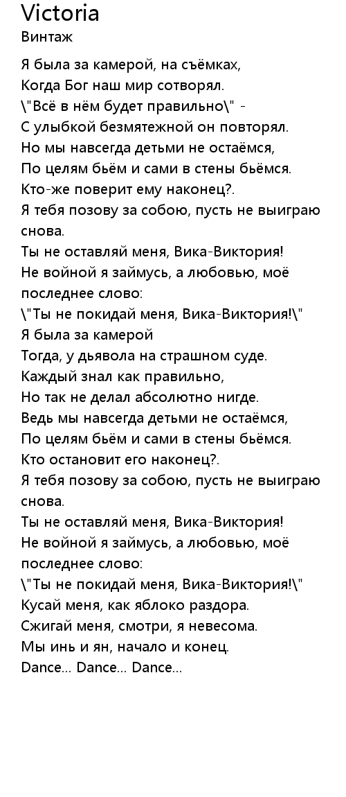 Ты не оставляй меня, Вика-Виктория! |