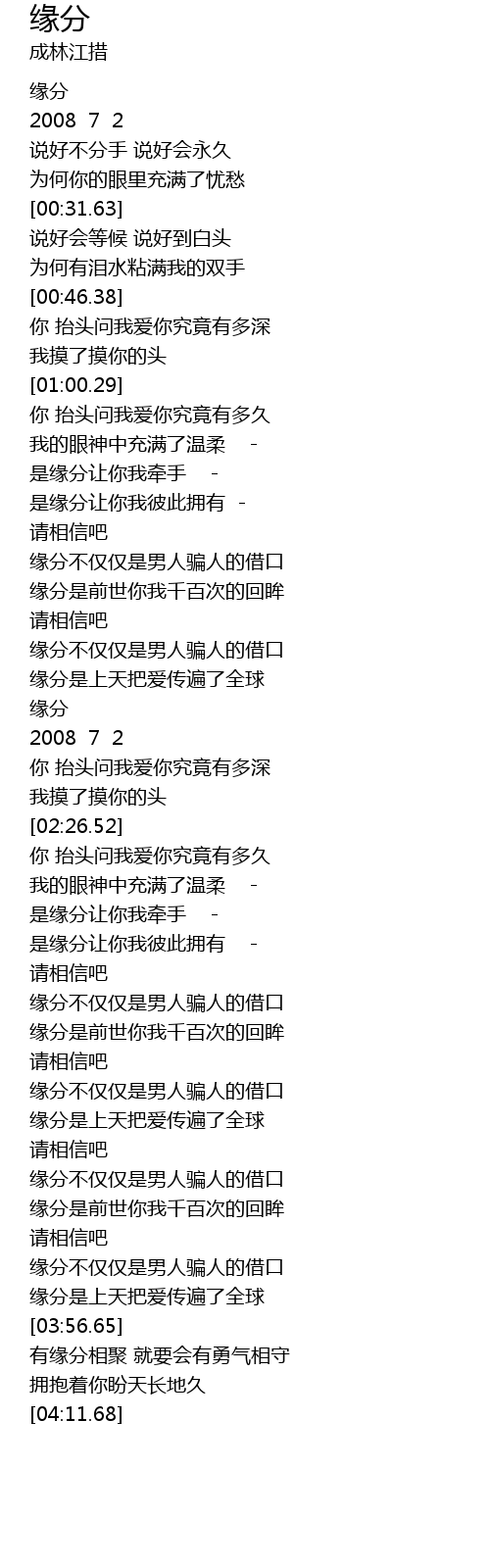 | [03:44.83] | yuan fen bu jin jin shi nan ren pian ren de jie kou |