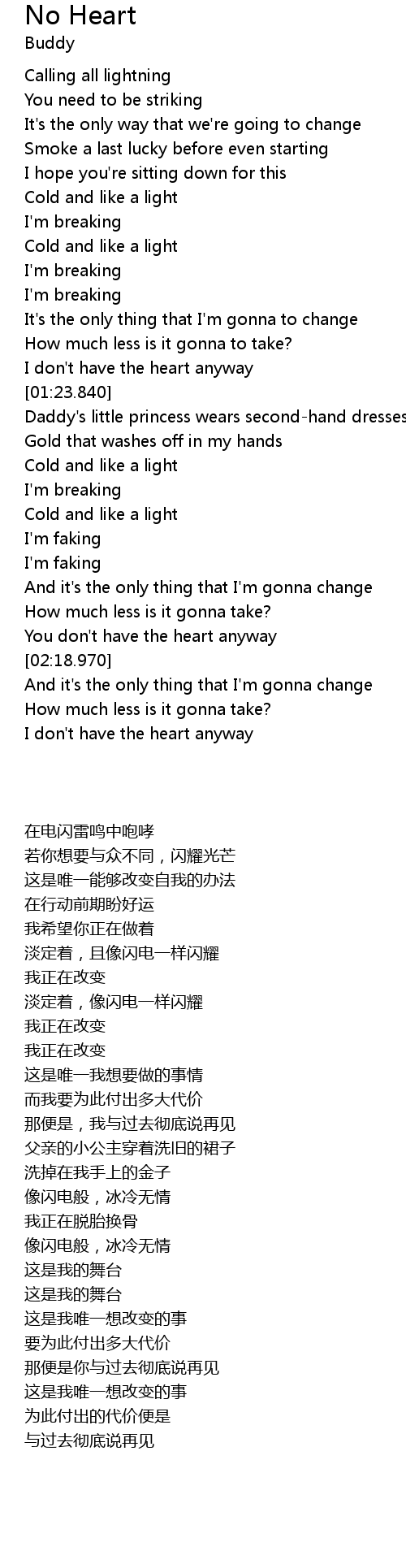 No Heart 歌词