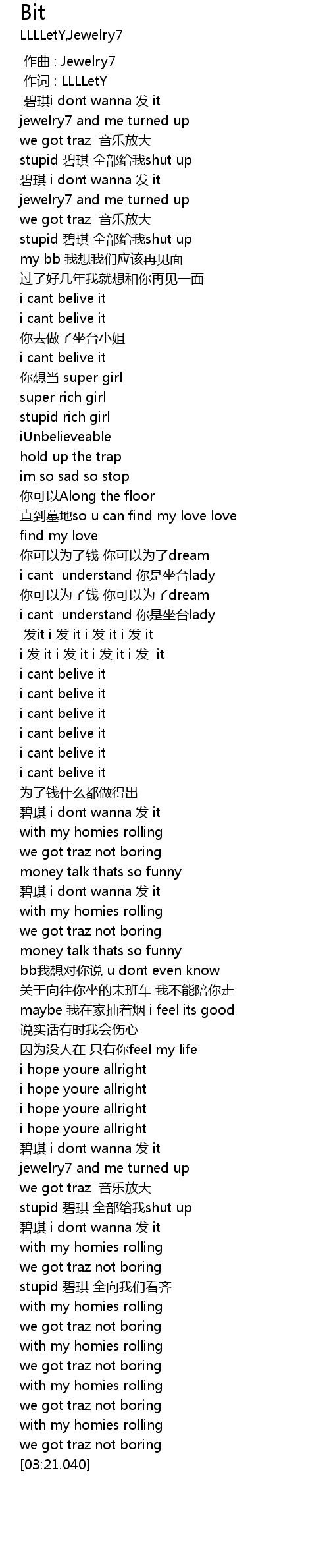 | [02:03.569] | bi qi i dont wanna fa it |
