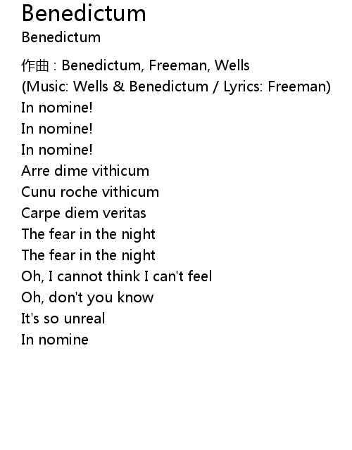 | 作曲 : Benedictum, Freeman, Wells | |