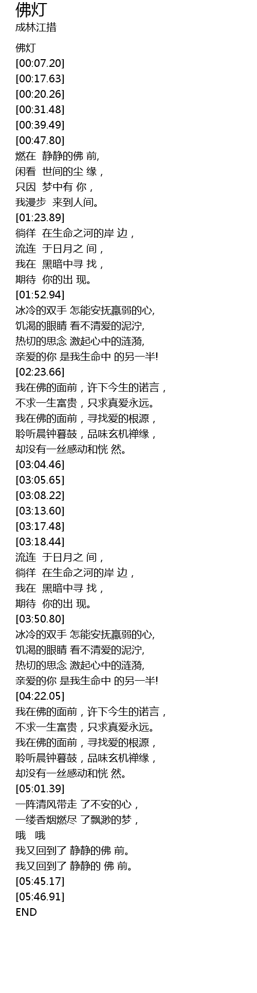 | [05:32.69] | 我又回到了 静静的 佛 前。 |