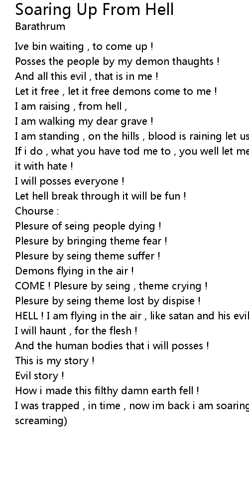 | I was trapped , in time , now im back i am soaring up from hell ! (Evil screaming) |