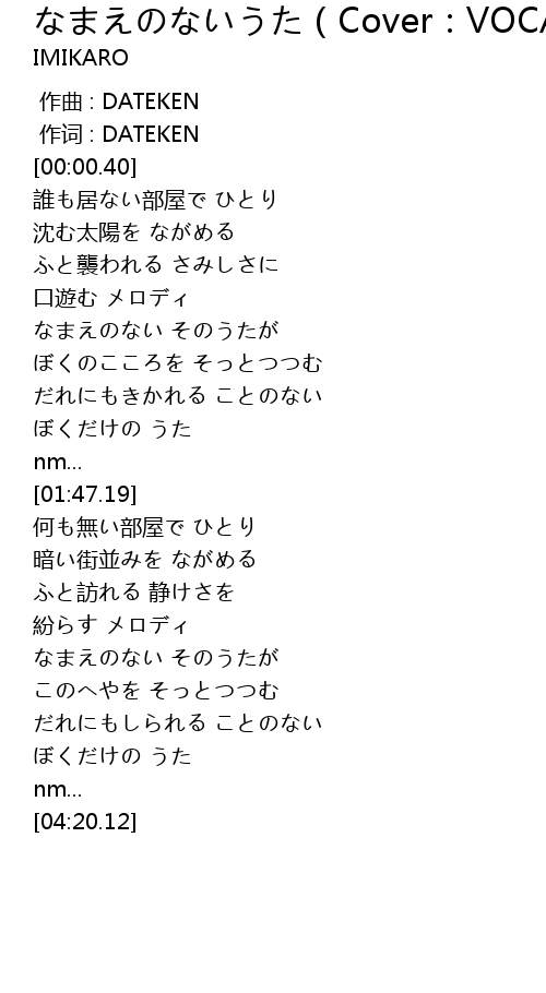 なまえのないうた(Cover:VOCALOID) 歌词