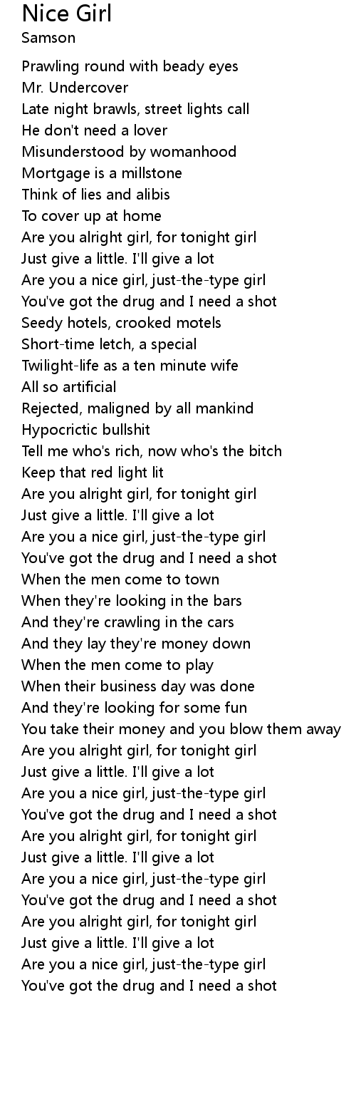 Are you a nice girl, just-the-type girl |