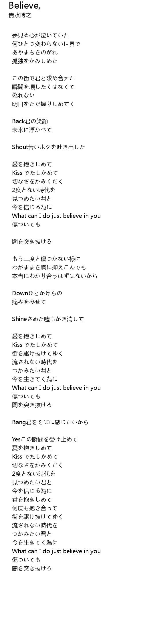 | 歌曲 | Believe, |