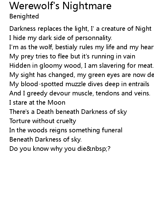 | Darkness replaces the light, I' a creature of Night | |