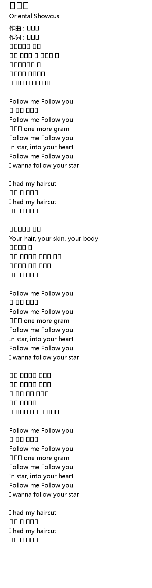 | 歌曲 | 헤어컷 |