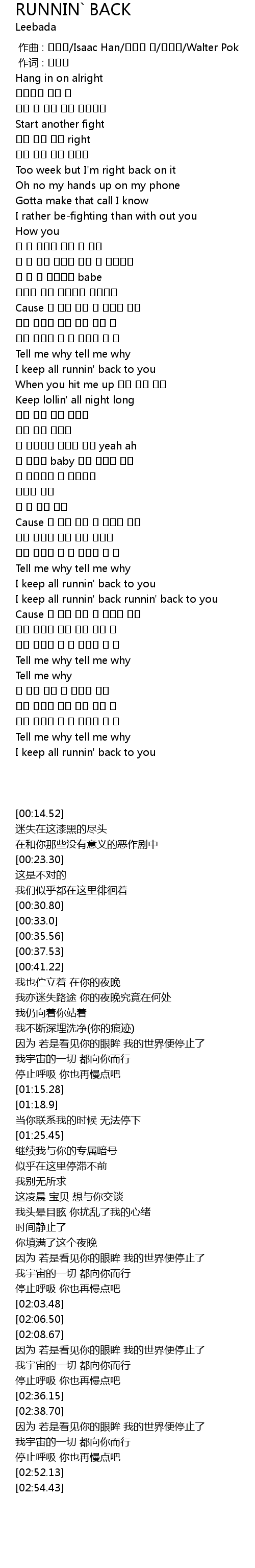 | [00:00.000] | zuo qu : Isaac Han Walter Pok |
