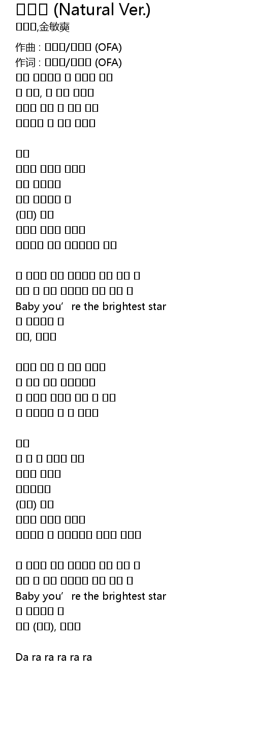 | 作词 : 김민석/이요한 (OFA) | |