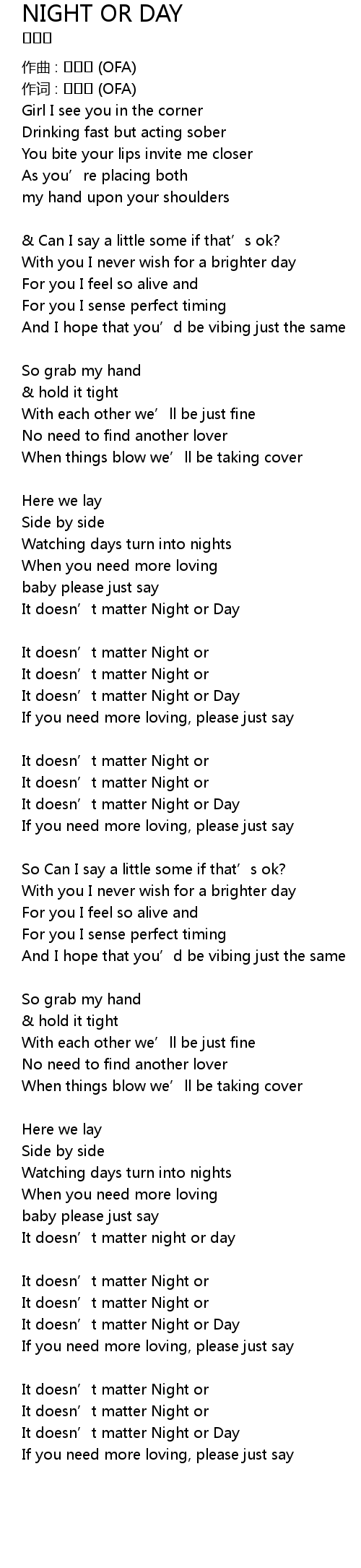 | It doesn' t matter night or day | |