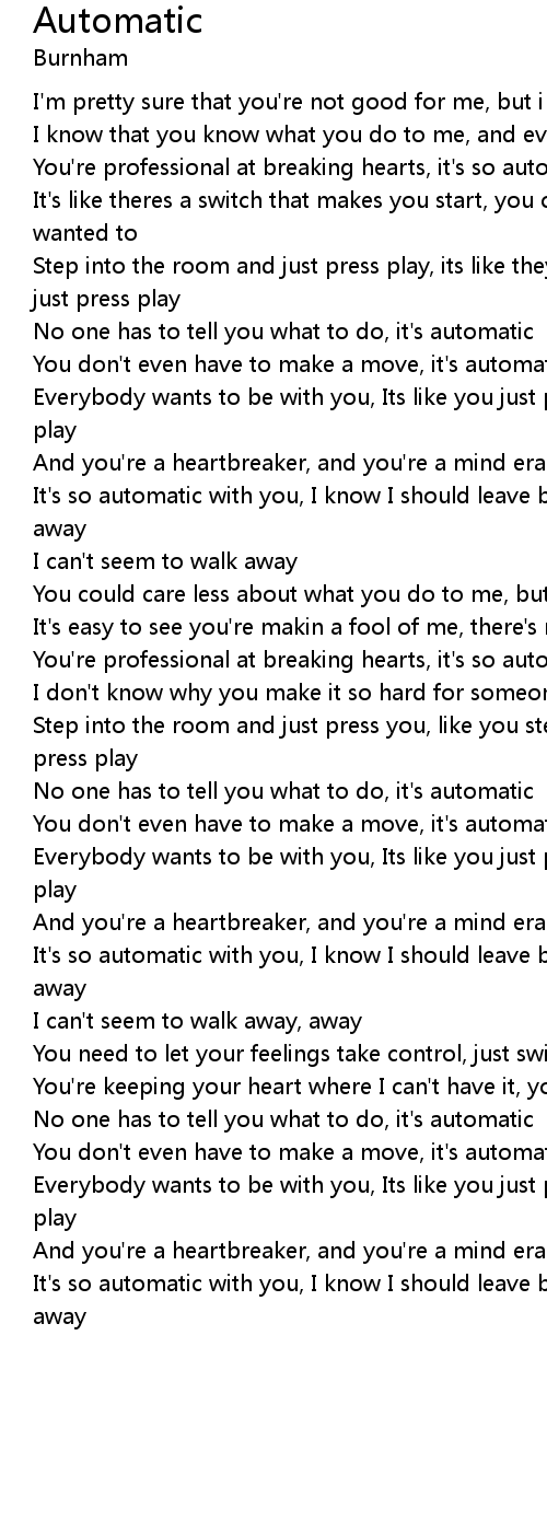 It's so automatic with you, I know I should leave but I just can't seem to walk away