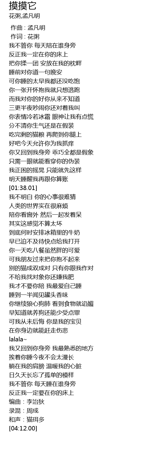 | [02:32.57] | 别的猫成双成对 只有你跟我作对 |