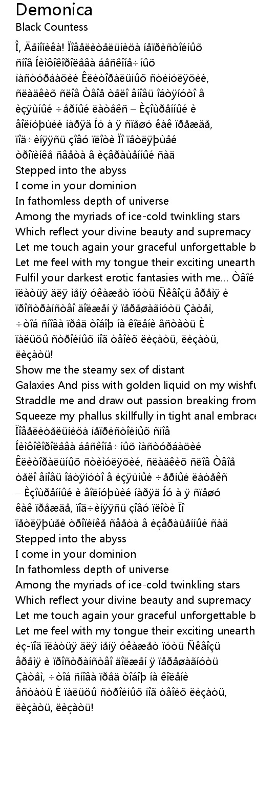 | Let me feel with my tongue their exciting unearthly taste Òé àà è àòü ìí óàò óòü ü ì è òàíò í àíóòü àòì, òá íà òá íà íè òàòü È àü òéí í òè èàòü, èàòü, èàòü! |