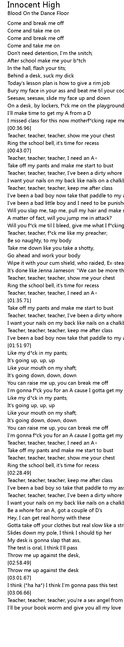 Teacher, teacher, f*ck me like my preacher; |
