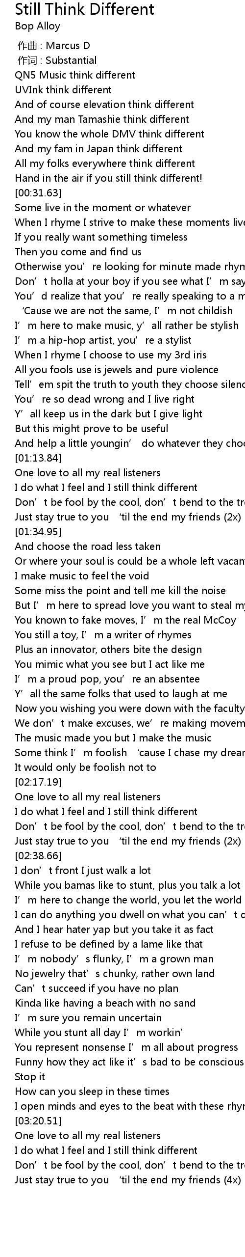 | [00:26.54] | All my folks everywhere think different |