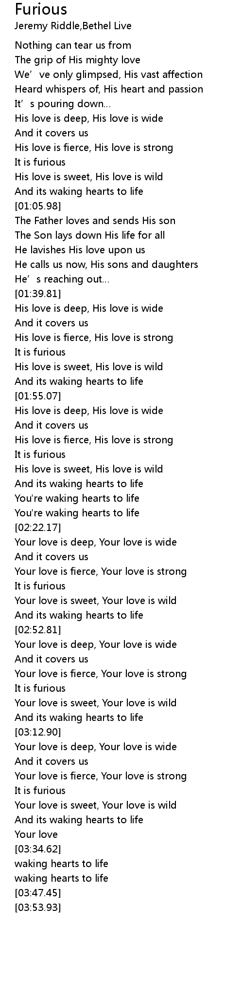 | [02:42.58] | Your love is fierce, Your love is strong |