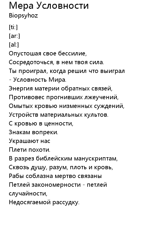 Мера Условности 歌词